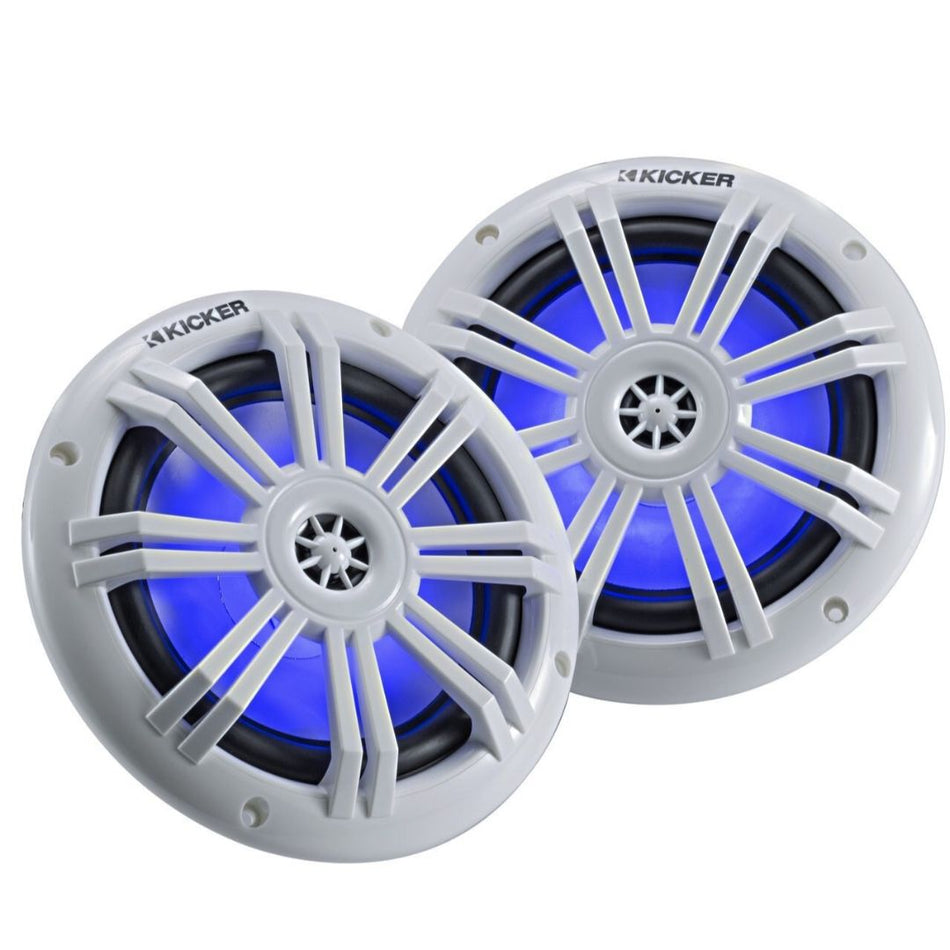 Kicker KM604WL, KM 6.5" 2-Way Coaxial Marine Speakers White w/ Blue LED (49KM604WL)