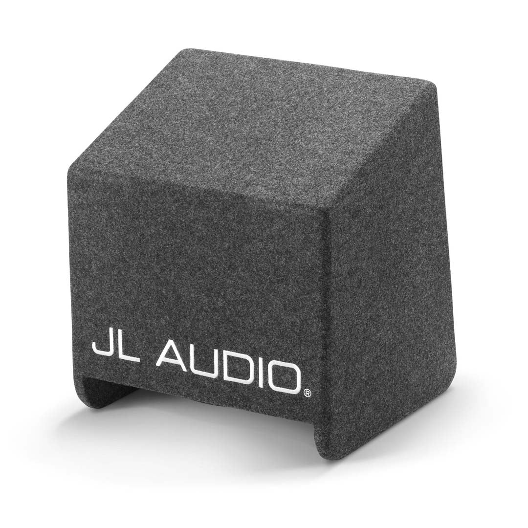 Finish: Dark gray, high-grade automotive carpet with "JL AUDIO" embroidery on the top edge and "Slot-Ported BassWedge™" embroidered on the port mouth.