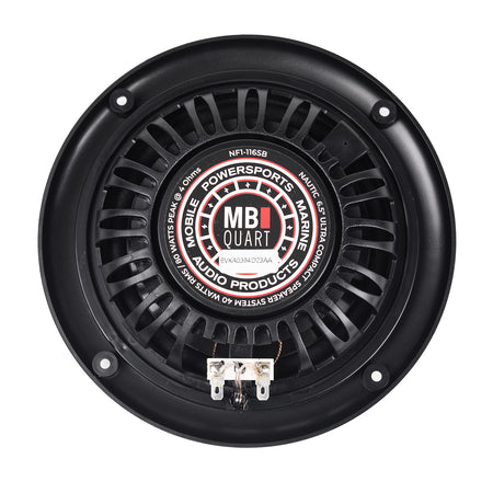 6.5 inch Composite Poly Midrange: Water resistant composite polypropylene cone with temperature stable UV Butyl rubber surround mounted on a lightweight composite frame.