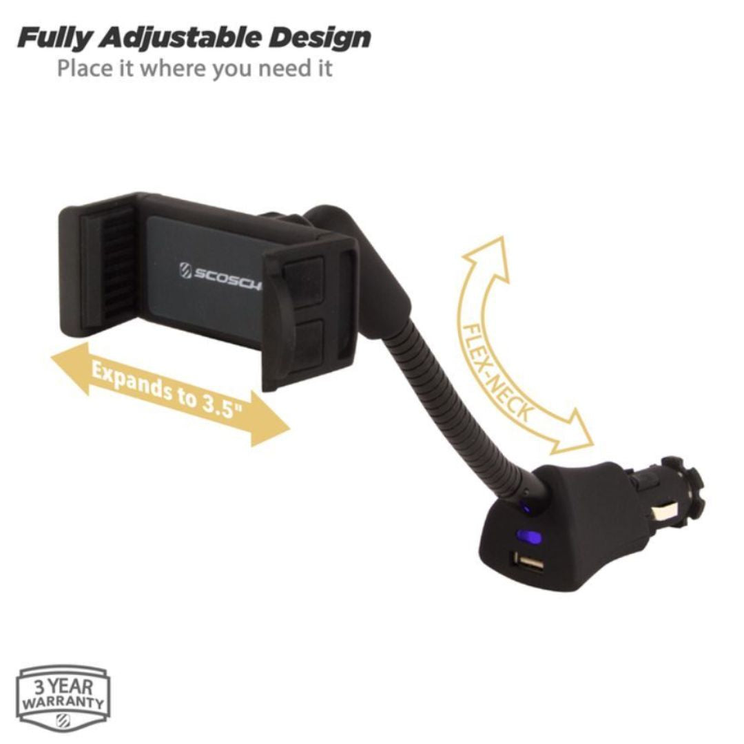 Scosche H12VFXM, Universal Power Socket Flex Mount + USB Charging Port