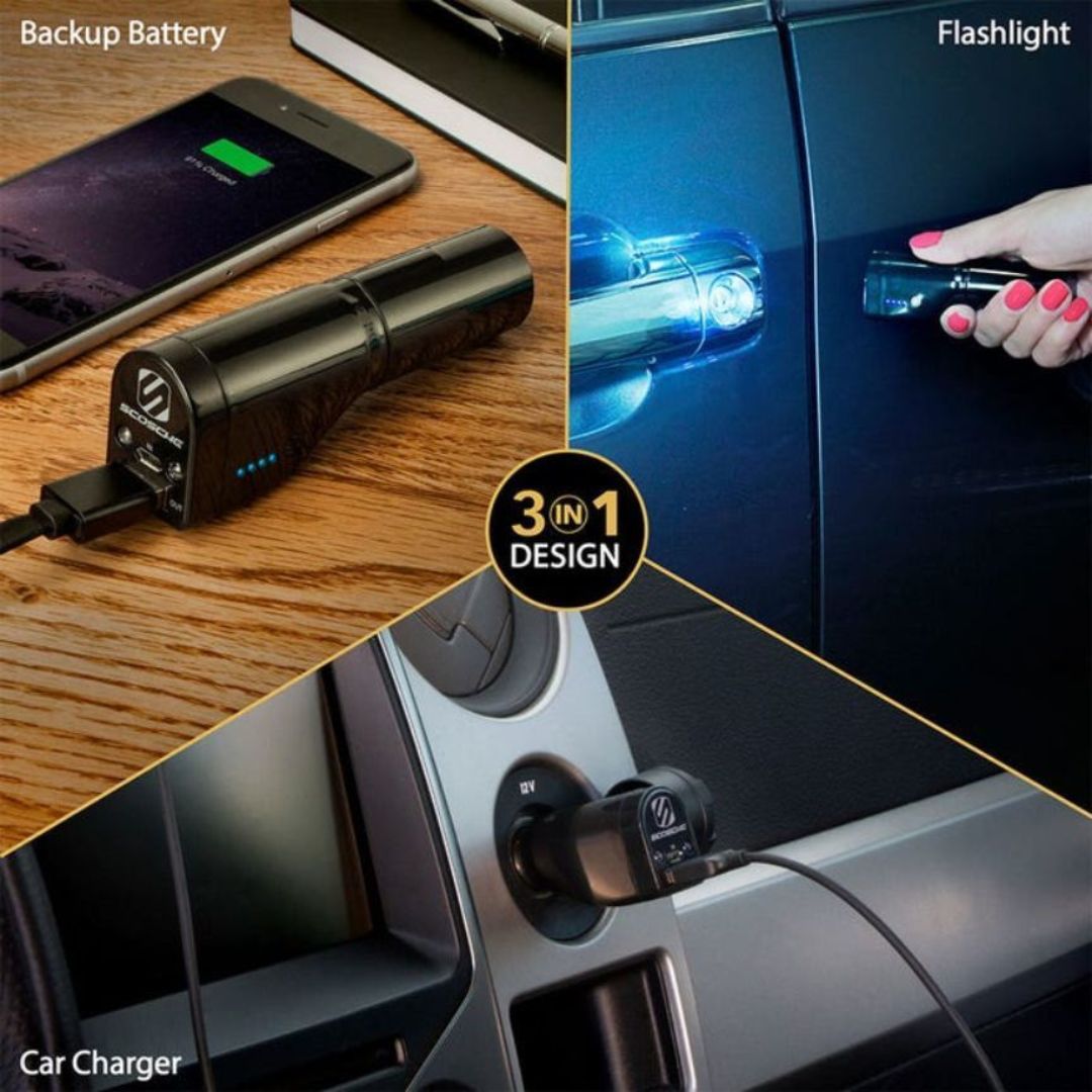 Scosche PBC71, 3-In-1 Power Bank w/ Emergency Flashlight (Black)